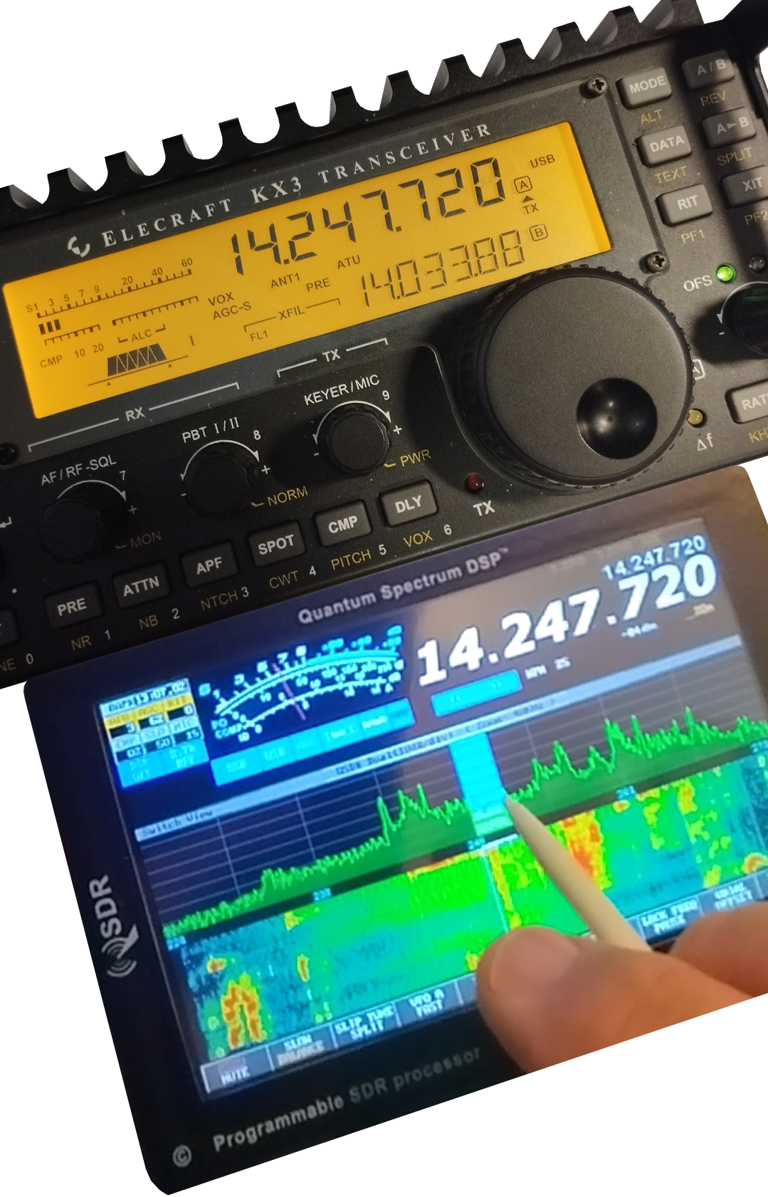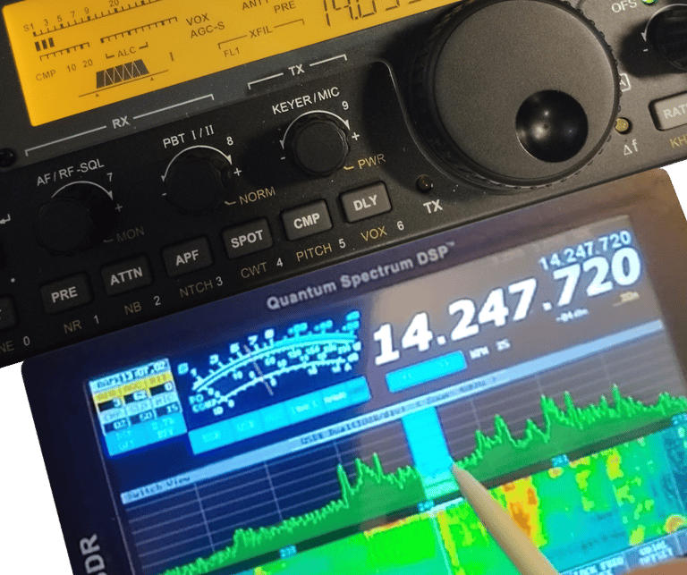 The Xiegu G90 is an excellent compact HF rig so why not upsize that 1.8" LCD and make it truly amazing! The Quantum Spectrum-G90 connects to the Xiegu's IQ and Comm ports, fully integrating the Quantum's touch screen interface with the G90. You also get extra modes, from FM to freeDV, and at under half the cost of the GSOC!